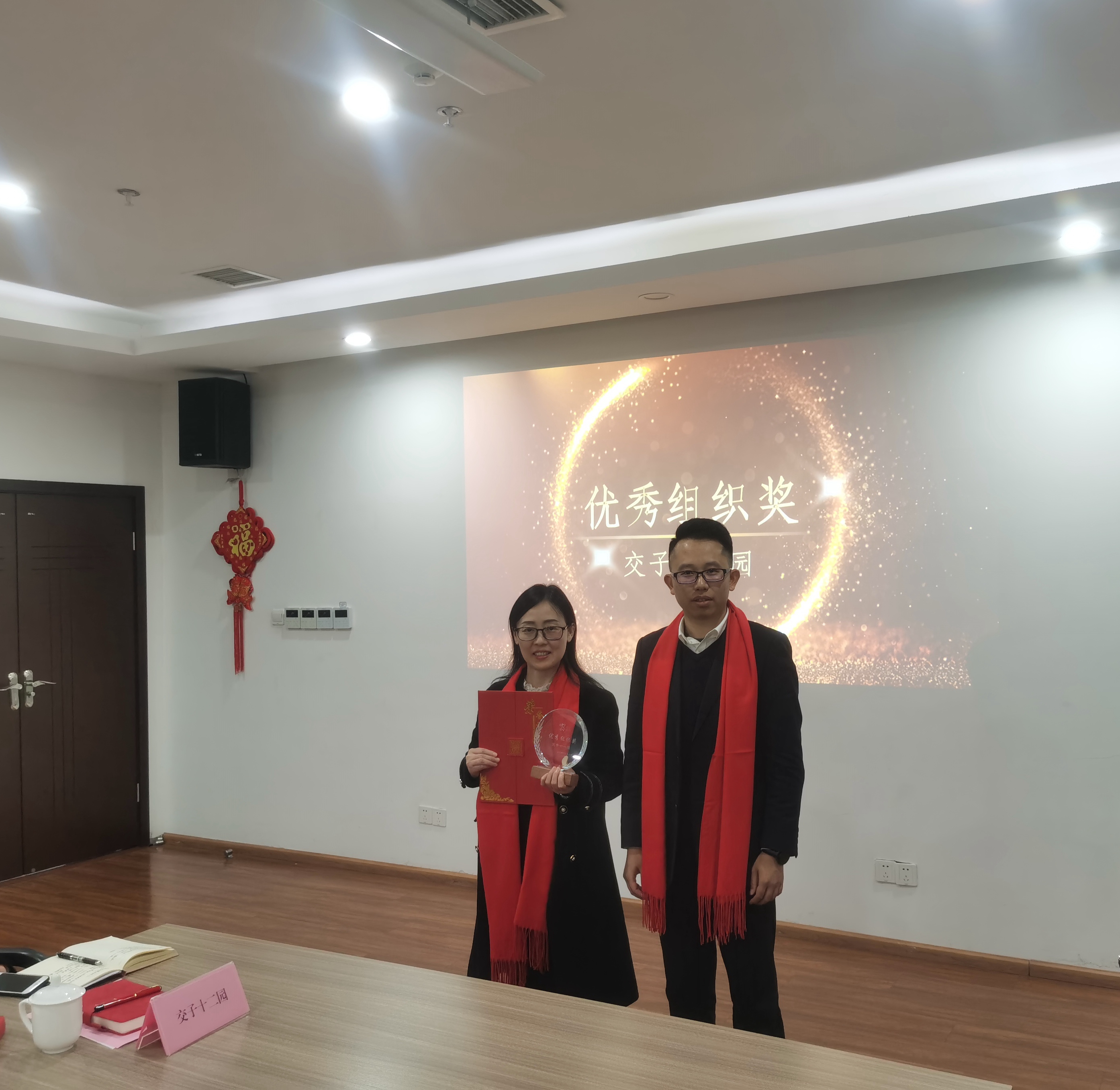 蒋鹏凯给交子六园颁发“卓越团队奖”
